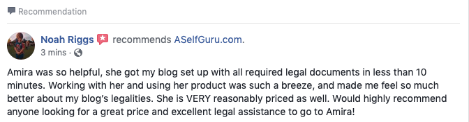 I am SO GLAD I decided to purchase the Legal Bundle by Amira! As a new blogger, it is difficult to decipher what is legit and what is false advertising. The Legal Bundle was EXACTLY as advertised! The documents were professionally written, and the instructions were super simple to follow.