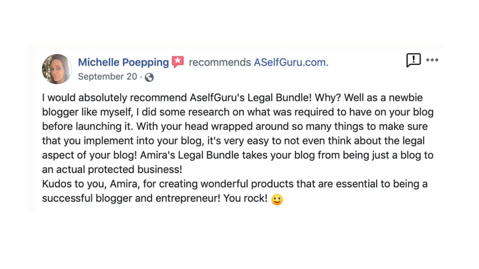 I didn't know where to start AT ALL concerning writing legal pages. I'm so glad I found Amira's Legal Bundle. It was SO EASY to use! I had no problems whatsoever, everything was already laid out, it was great and I feel like my blog is covered very well with these legal pages and the bonuses. I would recommend this to anyone and everyone wanting to do a blog to make money because legal stuff is hard and unless you're a lawyer yourself, this bundle just makes it so smooth and headache free. I got it all done and put on my blog in about 15 minutes. It has given me a peace of mind, I feel like I will be protected, and I didn't have to do a lot of research or try to worry about copyright stuff.