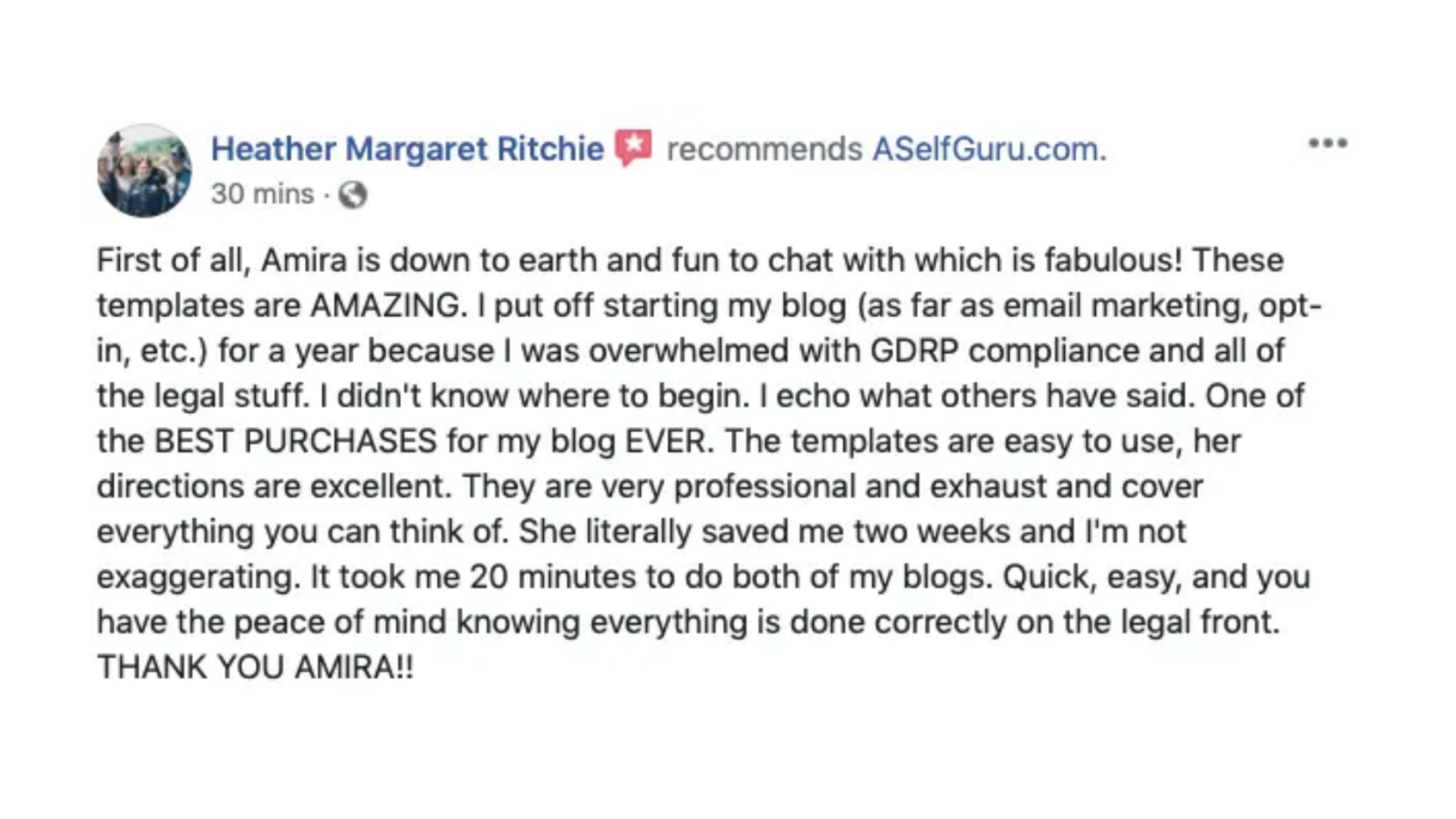 The Best Purchase I ever made for my blog! The professionalism and accuracy of the templates in the Legal Bundle is beyond what I truly thought possible. It took me just outside of 20 minutes to setup my legal pages. If you guys are on the fence about buying these templates I suggest you make the purchase. Seeing the price of some Lawyers selling legal documents I knew I had to go with Amira for my legal templates. Money well spent!