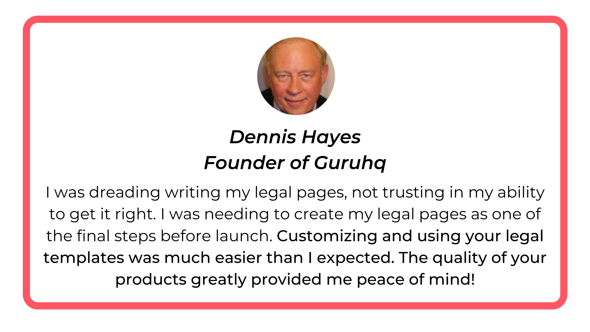 "I never thought it would be that easy to customize the legal templates and cover everything..."
