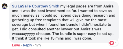 Amira helped us fix some of the verbiage in our legal pages! Tons of our Create and Go students have purchased her legal templates and have loved them!
