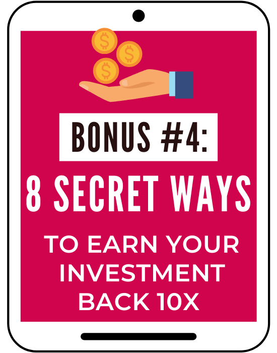 ➜ BONUS #4. 8 Secret ways to earn your investment back, learn how I made $25,000 from a single blog post and how you can recoup your small investment with my tips and tricks ($100 Value)