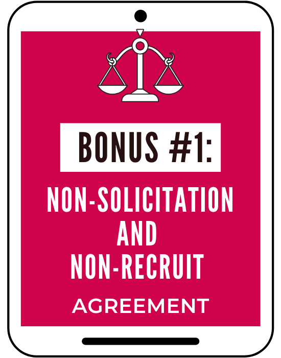 ➜ BONUS #1. Non-solicitation and non-recruit legal clause, so you have the legalese you need to protect against solicitation and recruitment of your team. ($150 Value)