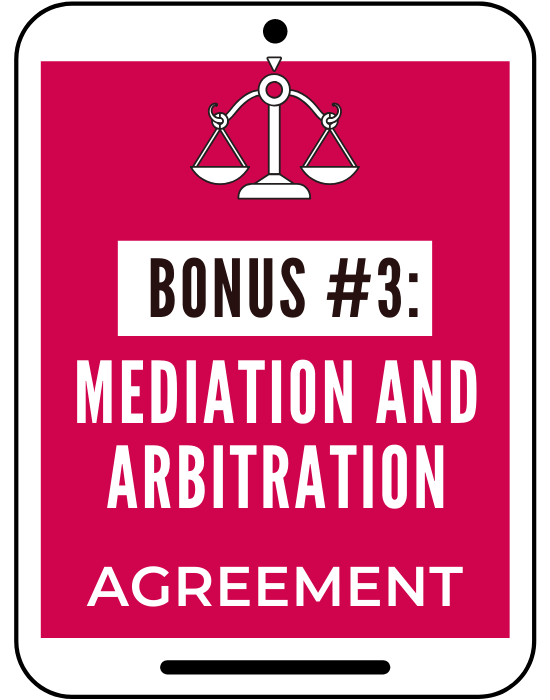 ➜ BONUS #3. Mediation and Arbitration legal clause, to prevent long expensive lawsuits ($200 Value)