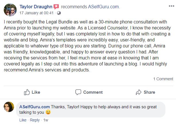 I am SO GLAD I decided to purchase the Legal Bundle by Amira! As a new blogger, it is difficult to decipher what is legit and what is false advertising. The Legal Bundle was EXACTLY as advertised! The documents were professionally written, and the instructions were super simple to follow.