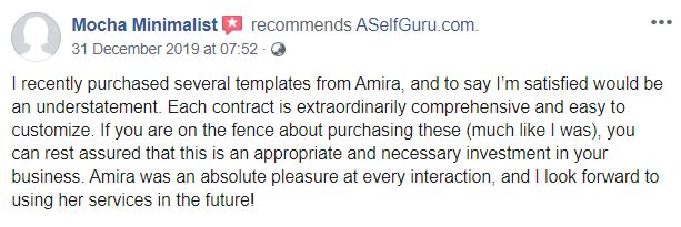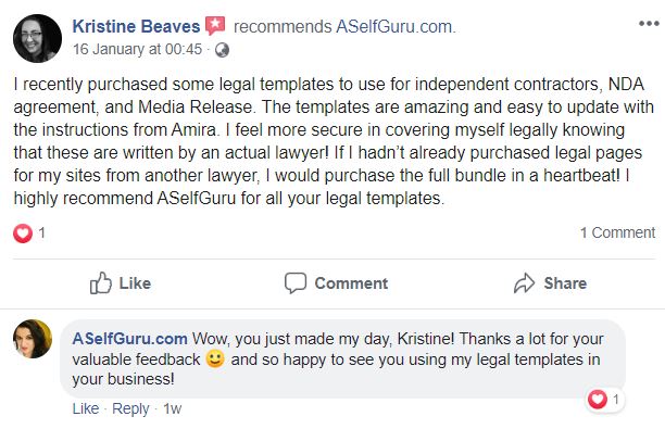 Amira helped us fix some of the verbiage in our legal pages! Thousands of our Create and Go students have purchased her legal templates and have loved them!