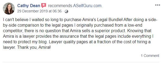 The Best Purchase I ever made for my blog! The professionalism and accuracy of the templates in the Legal Bundle is beyond what I truly thought possible. It took me just outside of 20 minutes to setup my legal pages. If you guys are on the fence about buying these templates I suggest you make the purchase. Seeing the price of some Lawyers selling legal documents I knew I had to go with Amira for my legal templates. Money well spent!