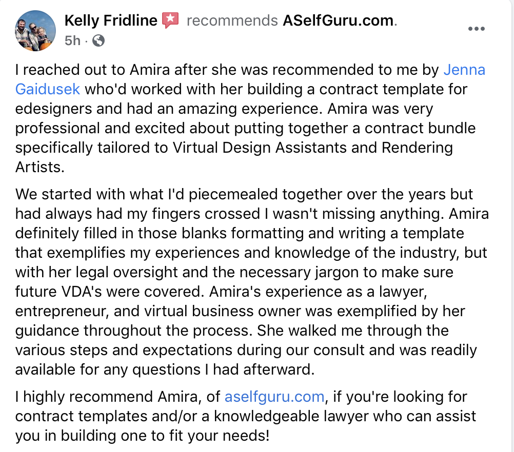 This experience made me become a lawyer and now I want to help online entrepreneurs just like you to avoid the painful experience that my dad and our family endured for a year because lawsuits are LONG and expensive.